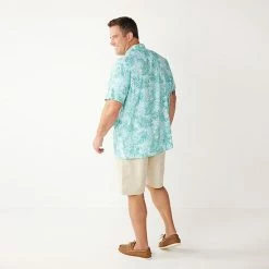 Big & Tall Croft & Barrow® Linen-Blend Vacation Woven Button-Down Shirt Palm Leaves Navy