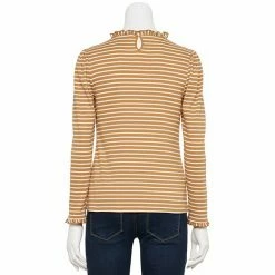 Petite Croft & Barrow® Ruffle Neck Puff Sleeve Top Navy White Stripe