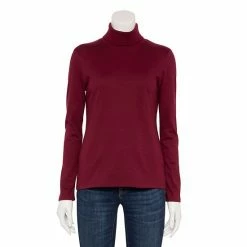 Petite Croft & Barrow® Essential Long-Sleeve Mockneck Top Holiday Multi Print