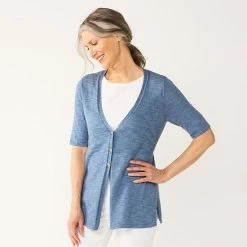 Petite Croft & Barrow® Elbow-Sleeve Cardigan Oatmeal Heather