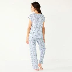 Women’s Croft & Barrow® Short Sleeve Pajama Top & Pajama Pants Cotton Sleep Set Mint Navy Dot