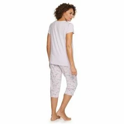 Women’s Croft & Barrow® Short Sleeve Pajama Top & Capri Pajama Pants Sleep Set Dark Gray Floral
