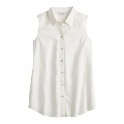 Women’s Croft & Barrow® Sleeveless Linen Blend Shirt Teal Palm