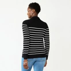 Women’s Croft & Barrow® Long Sleeve Polo Sweater Gray Stripe