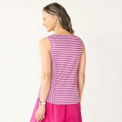 Women’s Croft & Barrow® Classic Comfort Collection Striped Tank Fuchsia Stripe