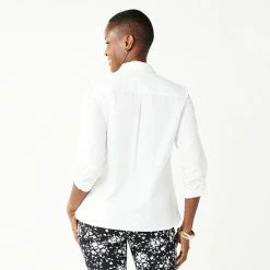 Women’s Croft & Barrow® Knit-To-Fit Roll Tab Sleeve Shirt Stripe Pocket Flap