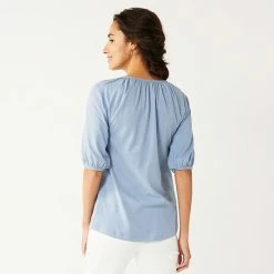 Women’s Croft & Barrow® Three Quarter Sleeve Eyelet Yoke Top Black
