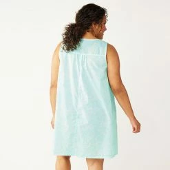 Women’s Croft & Barrow® Cotton Woven Nightgown Peach And Blue Check