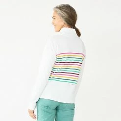 Petite Croft & Barrow® Long Sleeve Mockneck Sweatshirt Pink Modern Stripe
