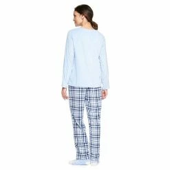 Plus Size Croft & Barrow® Velour Long Sleeve Pajama Top & Pajama Pants Set Burgundy Navy Checks