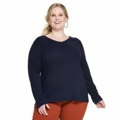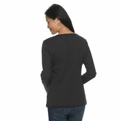 Petite Croft & Barrow® Essential Long-Sleeve V-Neck Top Red