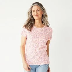 Plus Size Croft & Barrow® Boatneck Tee Pink Red Stripe