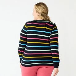 Plus Size Croft & Barrow® Extra Soft V-Neck Sweater Navy Multi Stripe