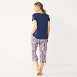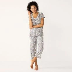 Women’s Croft & Barrow® Short Sleeve Pajama Top & Capri Pajama Pants Sleep Set Dark Gray Floral