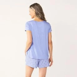Plus Size Croft & Barrow® Short Sleeve Pajama Top & Pajama Shorts Sleep Set Dash Purple Geo