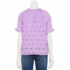Petite Croft & Barrow® Eyelet Short Sleeve Top Yellow