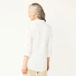 Women’s Croft & Barrow® Knit-To-Fit Roll Tab Sleeve Shirt Stripe Pocket Flap