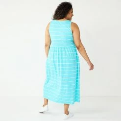 Plus Size Croft & Barrow® Sleeveless Tank Maxi Dress Blue Dye Stripe