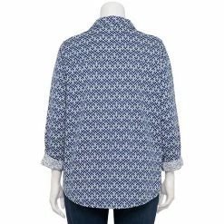 Plus Size Croft & Barrow® Roll-Tab Sleeve Top Navy Leaf Tile