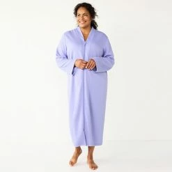 Plus Size Croft & Barrow® Waffle-Knit Zip-Front Robe Navy