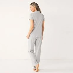 Plus Size Croft & Barrow® Short Sleeve Pajama Shirt & Pajama Pants Sleep Set Gray Heather