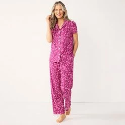 Women’s Croft & Barrow® Short Sleeve Pajama Shirt & Pajama Pants Sleep Set Navy Dots