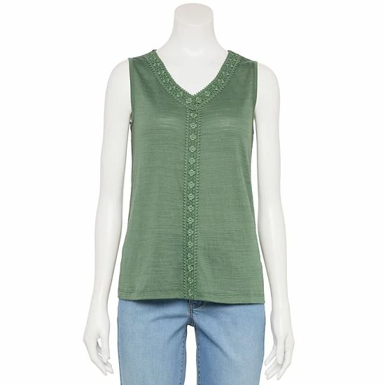 You’ll love the casual style of this petites’ lace-trim tank top by Croft & Barrow.