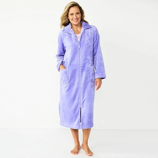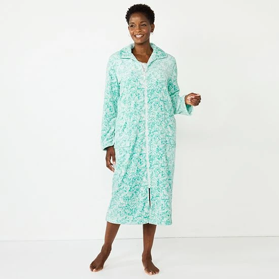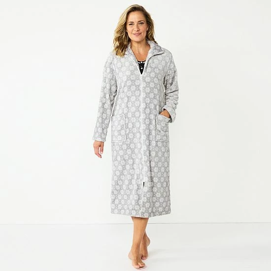 Featuring an allover plush construction, this women’s Croft & Barrow zip lounge robe abounds with luxurious comfort.