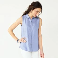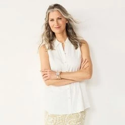 Welcome summer weather in this petites’ linen blend tank top from Croft & Barrow.