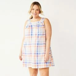 Plus Size Croft & Barrow® Cotton Woven Nightgown Navy Check