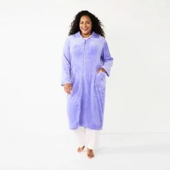 Featuring an allover plush construction, this women’s Croft & Barrow zip lounge robe abounds with luxurious comfort.
