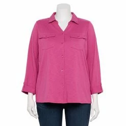 Upgrade your casual wardrobe with this women’s plus size Croft & Barrow knit shirt.