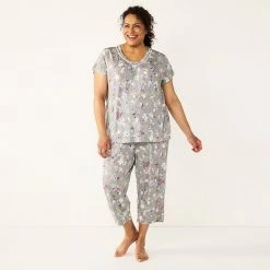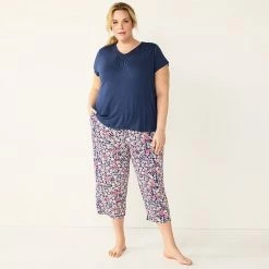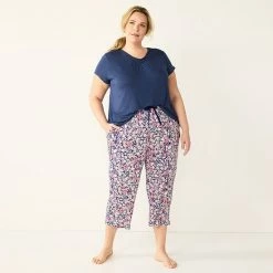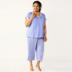 Plus Size Croft & Barrow® Short Sleeve Pajama Top & Capri Pajama Pants Sleep Set Dash Purple Geo