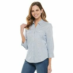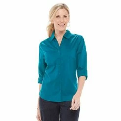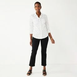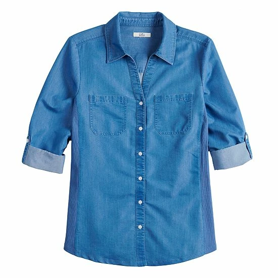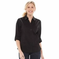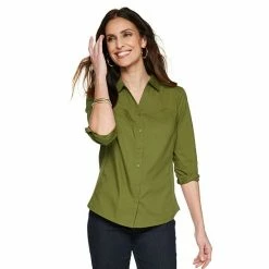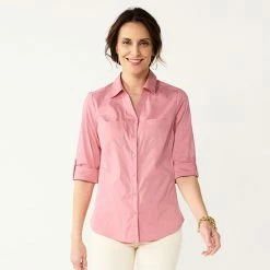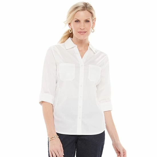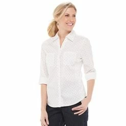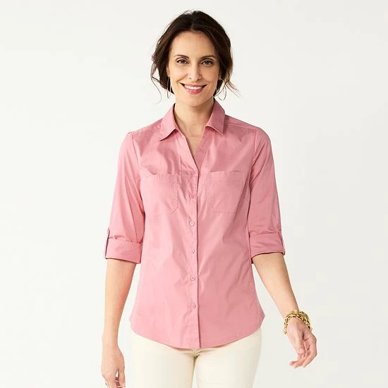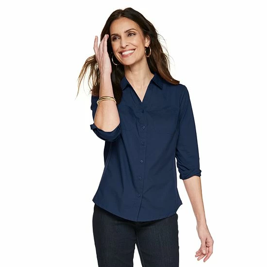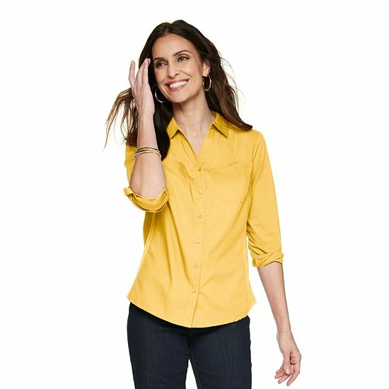 Upgrade your basics with this women’s Croft & Barrow knit-to-fit button front shirt.