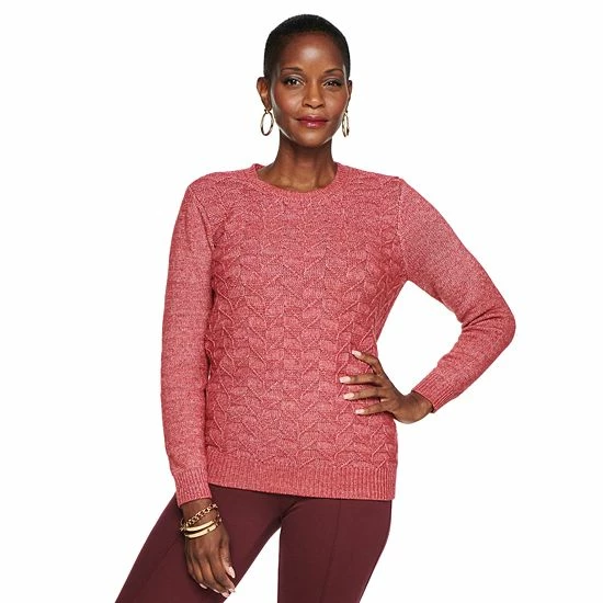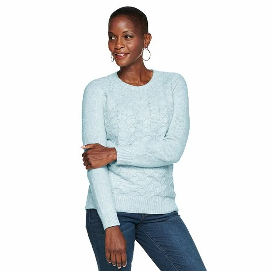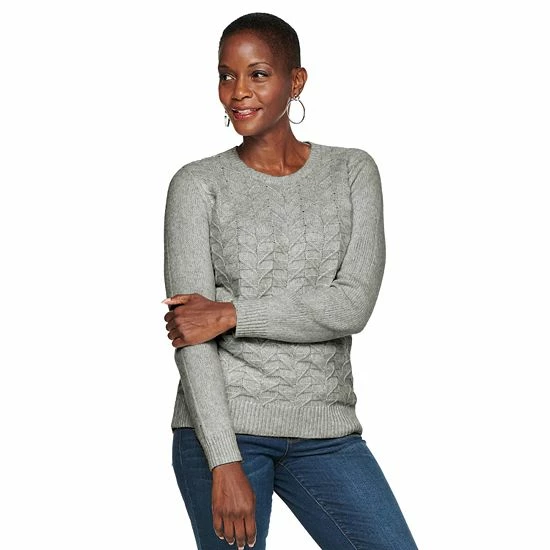 Fabulous fall style is yours wearing this women’s Croft & Barrow leaf stitch sweater.