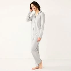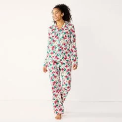 Women’s Croft & Barrow® Long Sleeve Pajama Shirt & Pajama Pants Sleep Set Floral Geo