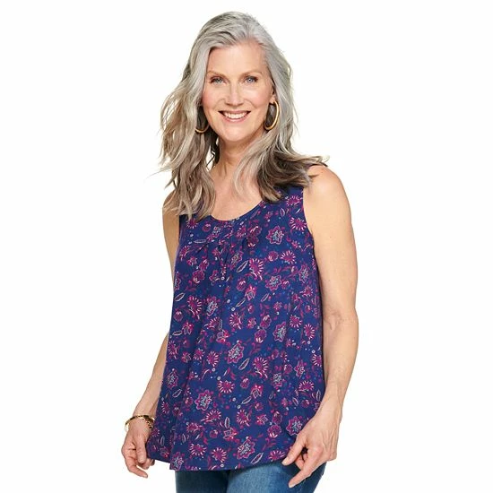 Pleated details and a draped design combine to give this women’s Croft & Barrow tank top a great casual look.