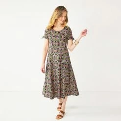 Tie-accents on the sleeves give this women’s Croft & Barrow midi dress a charming look.