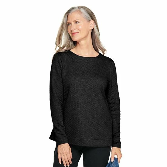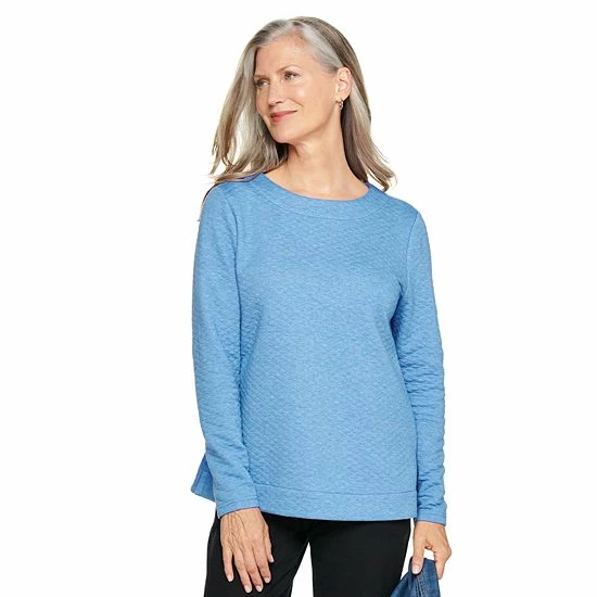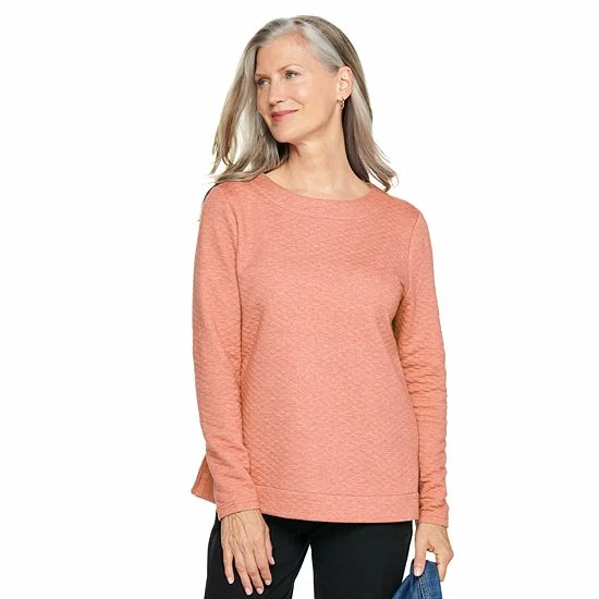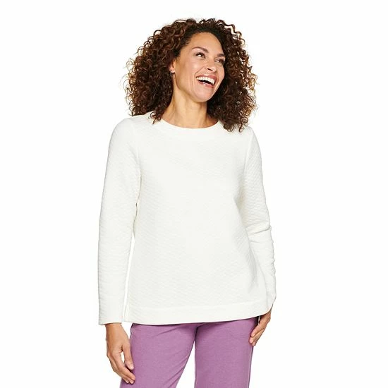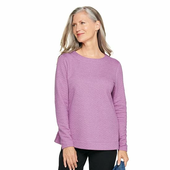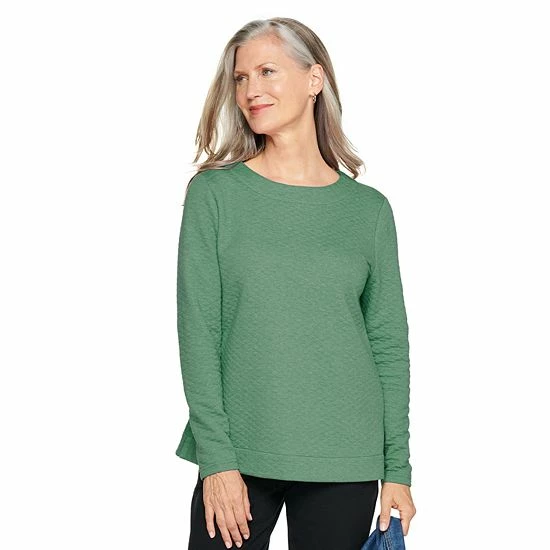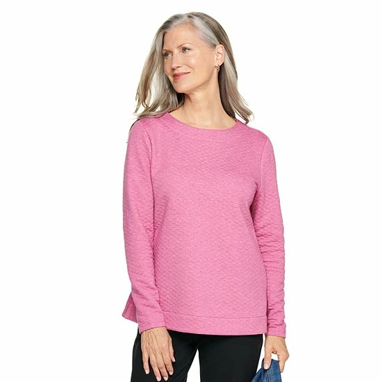 For a cute, cozy look reach for this women’s Croft & Barrow quilted sweatshirt.