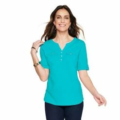 Upgrade your essentials with this women’s Croft & Barrow utility henley top.