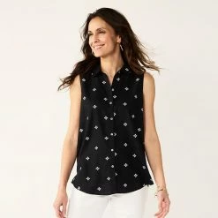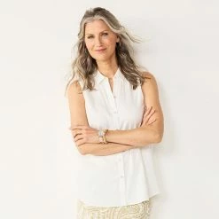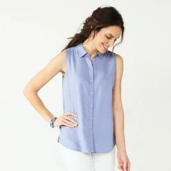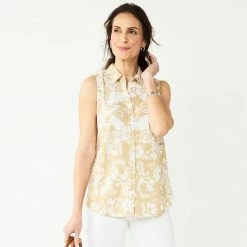 You’ll love the lightweight linen blend of this women’s Croft & Barrow sleeveless shirt.