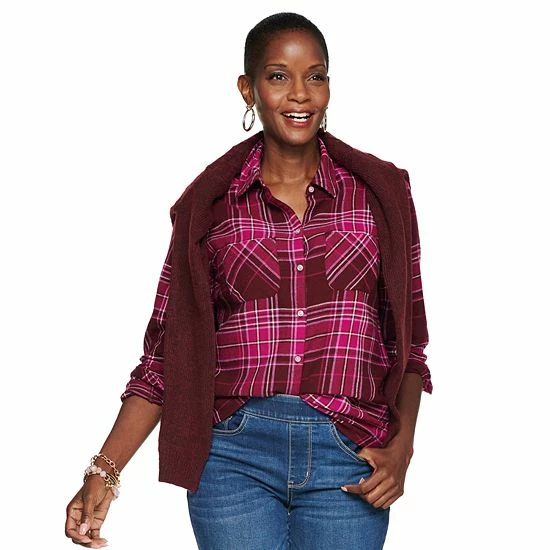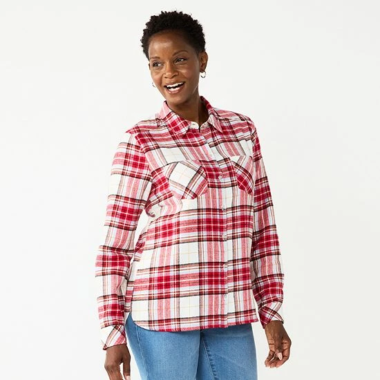 Upgrade your casual wardrobe with this extra soft women’s flannel shirt from Croft & Barrow.